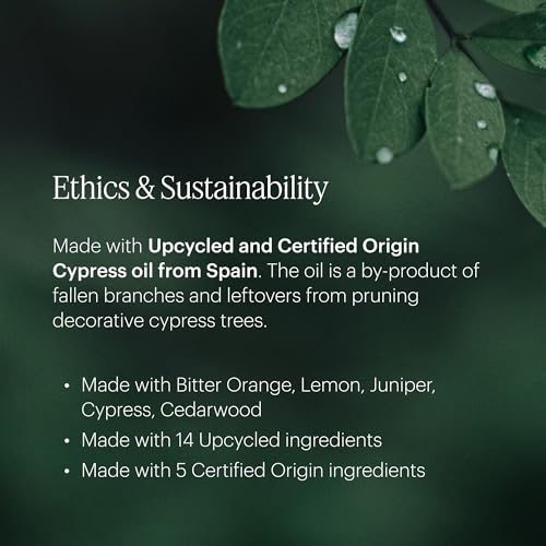 Sustainably Sourced & Upcycled Ingredients Crafted with 14 upcycled ingredients and 5 certified origin essential oils, including cypress from Spain, this fragrance is both eco-conscious and luxurious. By using by-products from pruning, we reduce waste while delivering a rich, high-quality scent experience. “High-quality fragrance, worth every penny!”