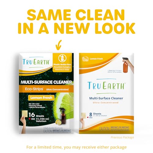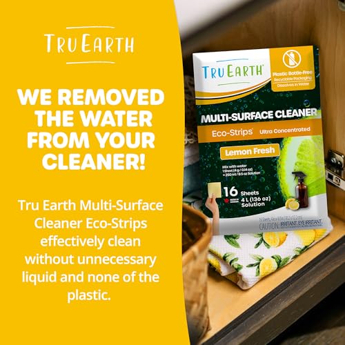 Tru Earth Multi-Surface Cleaner Eco-Strips | All Purpose Cleaner Concentrate for Multi-Use, Fresh Lemon Scent, 16 Strips