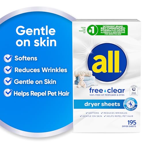 Pair with all free clear detergent and fabric softener for a complete sensitive-skin-friendly laundry routine. Includes one box of 195 dryer sheets