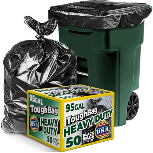 ToughBag 95-96 Gallon Trash Bags Heavy Duty, Black Garbage Bags (50 COUNT) Extra Large 90, 95, 96, 100 Gallon Can Liners – Made In USA