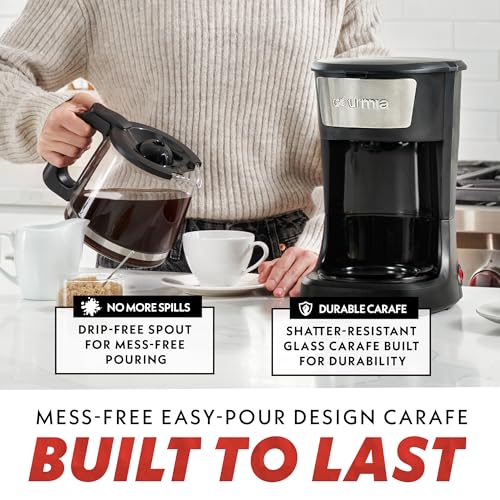 Gourmia Drip Coffee Maker – 12 Cup, One-Touch Operation, Pause & Serve, Automatic Keep Warm, Easy View Water Window, Compact Design, Stainless Steel Accents, Black
