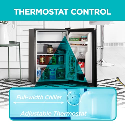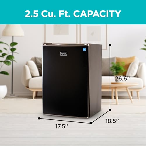 BLACK+DECKER 2.5 Cu. Ft. Compact Refrigerator, ENERGY STAR Certified, Single Door Mini Fridge with Chiller Compartment, Personal Fridge for Home or Dorm Room, R600a Refrigerant, BCRK25B, Black