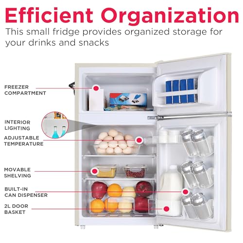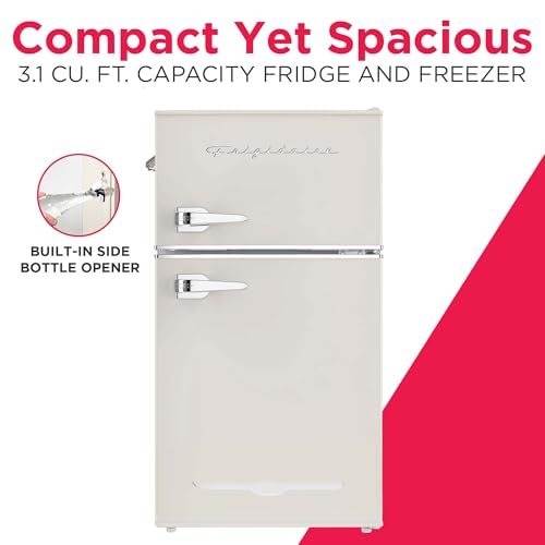 Frigidaire EFR840-Cream EFR840 Retro Mini Fridge with Freezer & Side Bottle Opener-Small 2 Door Refrigerator for Office Bar or College Dorm Room-3.1 Cu Ft (Cream)