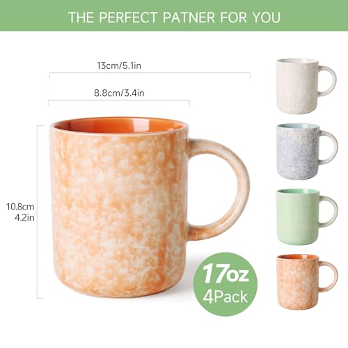 17 OZ Coffee Mugs Set of 4, Ceramic Modern Coffee Mugs Set with handle for Tea/Latte/Milk/Cocoa.