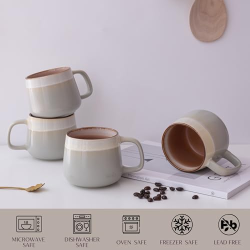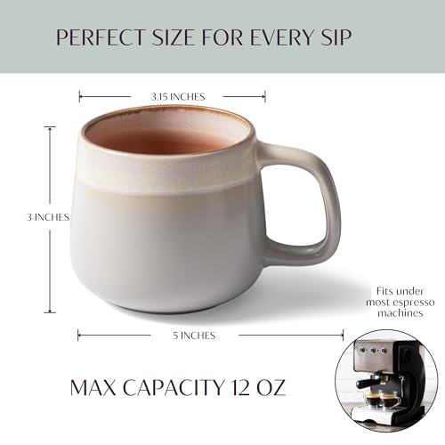 Ceramic Coffee Mugs Set of 4, 12 oz Stoneware Coffee Cups with Comfortable Handle for Latte, Tea, Cappuccino, Cocoa -Microwave and Dishwasher Safe – Modern Unique Aesthetic – Reactive Glaze