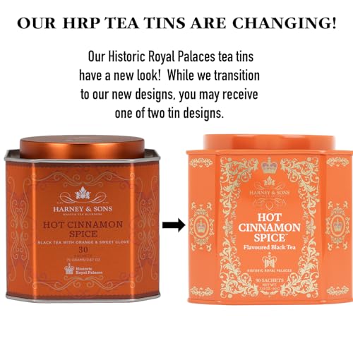 Harney & Sons Hot Cinnamon Spice Tea Tin – Black Tea with Orange & Sweet Clove – 2.67 Ounces, 30 Sachets