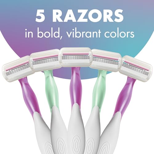 BIC Soleil 3 Sensitive Women’s Disposable Razors, 3 Blades With Moisture Strip For a Silky Smooth Shave, 5 Piece Razor Set