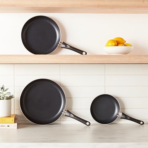 Amazon Basics Non Stick 3-Piece Kitchen Cookware Set, Includes 8-inch, 10-inch, 12-inch Pan, Black