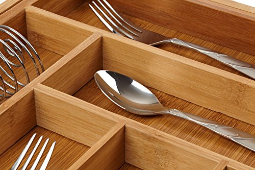 Bellemain Expandable Bamboo Drawer Organizer – Large Kitchen Utensil Holder for Cutlery, Silverware, Flatware Storage – Utensil Organizer for Kitchen Drawers, Desk, Junk Drawer Organizer Tray, 8-Slot