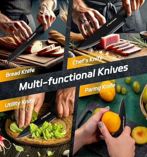 XANAPON Knife Set, 14 Pieces Kitchen Knife Set, High Carbon German Stainless Steel, Dishwasher Safe Cutlery with Sharpener, Black