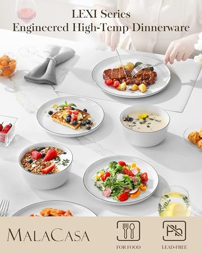 MALACASA 24 Pieces Gourmet Porcelain Dinnerware Sets, Premium Plates and Bowls Set, High-Fired Dishes Set for 8, Chip & Scratch Resistant, Microwave Dishwasher Safe, White & Black Rim, Series LEXI