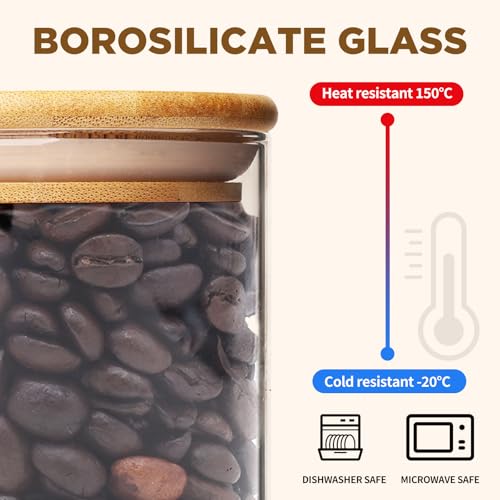 25oz Glass Food Storage Jars, Glass Jars with Bamboo Lids, Kitchen Storage Jars, Set of 6, Canisters with Airtight Lids for Spice, Coffee, Cookie, Pantry Organizers