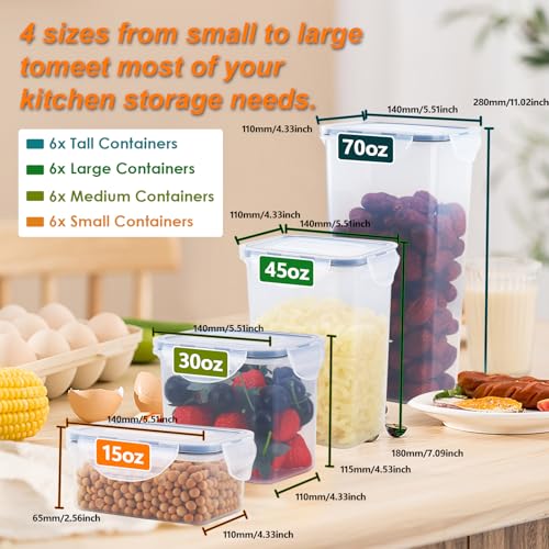 48 PCS Airtight Food Storage Containers with Locks (4 Sizes) – BPA-Free Plastic Kitchen & Pantry Organizers, Stackable Leakproof Containers for Flour, Sugar, Cereal,Snack,Pet,Meal Prep
