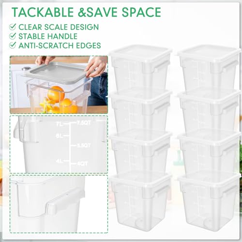 Abundant Quantity and Versatile Use: you will receive 8 pieces of 8Qt food storage containers with lids; These sturdy restaurant food storage containers with lids provide ample storage space and are suitable for storing grains, leftovers, and a variety of food items; They can be applied for storing small tools and can function effectively as a measurement tool, making them a versatile addition to your kitchen