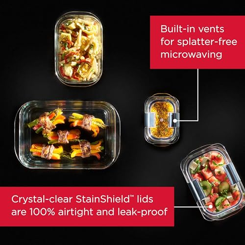 EASY STORAGE AND REHEATING: Glass containers have vented, microwave-safe lids for easy, splatter-resistant microwaving