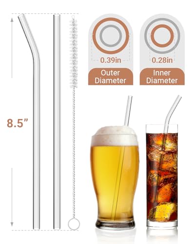 Foogwee® 20 Packs Reusable Glass Straws Set, 8.5” x 10mm Clear Drinking Straws for Smoothies, Shakes, Coffee, Juice, Sodas, Milk, Tea, Cocktails, Set of 8 Straight and 8 Bent with 4 Cleaning Brushes