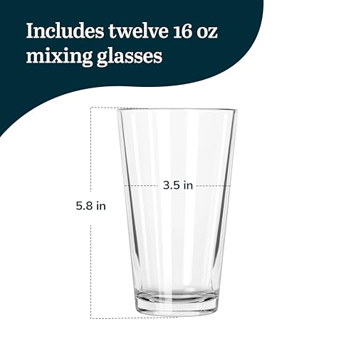 Libbey Drink Mixing Glass Set of 12 : Let this versatile beer pints be your go-to behind the bar for crafting cocktails, water, and soda. Designed for everyday use, this all-purpose restaurant water glasses features a generous 16-ounce capacity, ideal for any beverage. Crafted with DuraTuff treatment, each 16 oz glass for mixing is protected from thermal and mechanical shock, ensuring durability and longevity even with frequent use. The heavy sham of these water glasses set of 12 adds extra strength and stability to withstand daily wear. This restaurant glasses set includes 12 mixing glasses, each measuring 3.5 inches in diameter and 5.88 inches in height, designed for easy storage and practical convenience. Durable and dishwasher safe for effortless cleaning, this duratuff glass mixer for cocktails helps you maintain a clean and polished bar setup. For best results and to preserve the quality of your clear drinking glasses, always wash prior to first use. Elevate your glass drinkware collection with this stylish beer glass set that’s built to last.