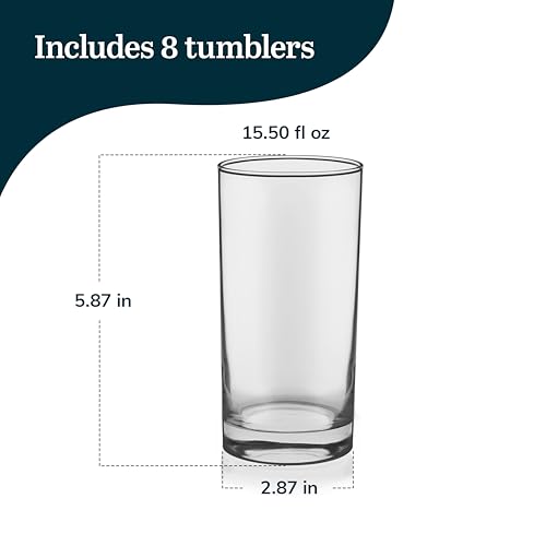 Libbey Heavy Base Drinking Glasses Set of 8, 15.5 Oz Elegant, Weighted Clear Water Glasses, Dishwasher Safe Glass Cups Set for Parties, Birthdays