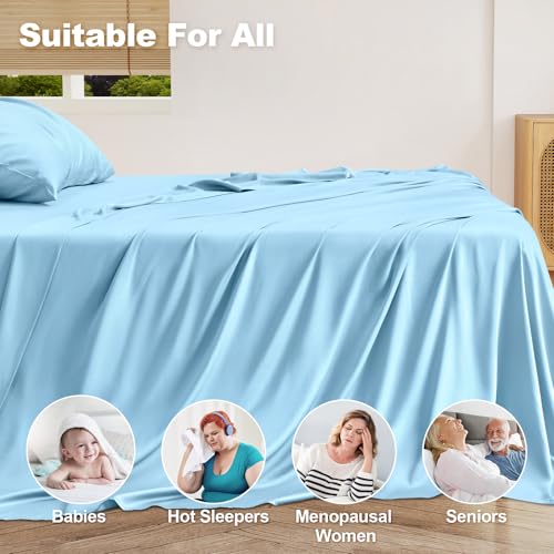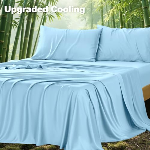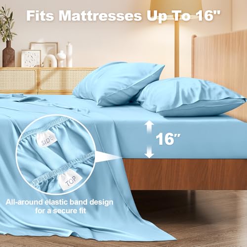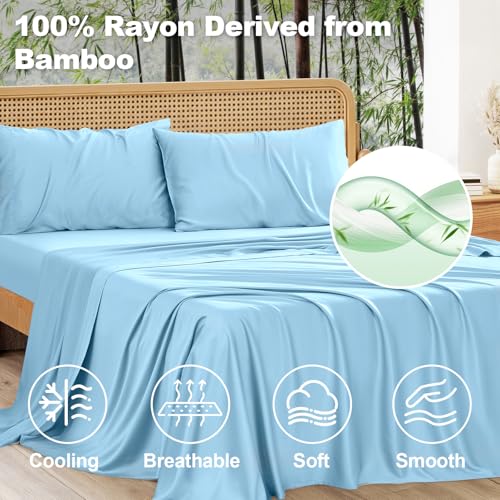 King Sheet Set, 100% Rayon Derived from Bamboo, 4-Piece, 16 Inch Deep Pockets, Cooling Sheets for King Size Bed Set, Breathable & Silky Soft, Hotel Bedding Sheets & Pillowcases, Baby Blue