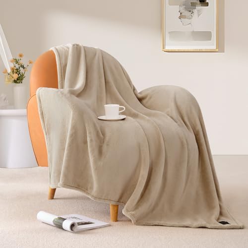 BEAUTEX Fleece Blanket King Size Super Soft Flannel Throw Blanket Lightweight Fuzzy Plush Blanket for Couch Sofa or Bed All Seasons (Ivory, 108″ x 90″)