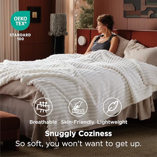 Bedsure GentleSoft Blankets Queen Size for Bed – Cozy Soft Sofa Couch Cover Blankets for Women, Cute Large Bedding Fleece Throws for Girls, Off White, 90×90 Inches