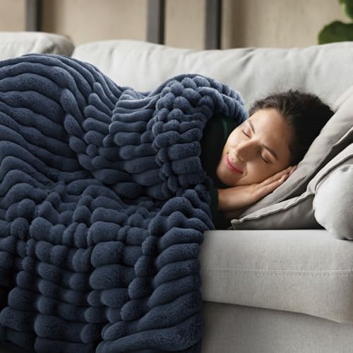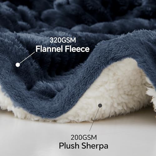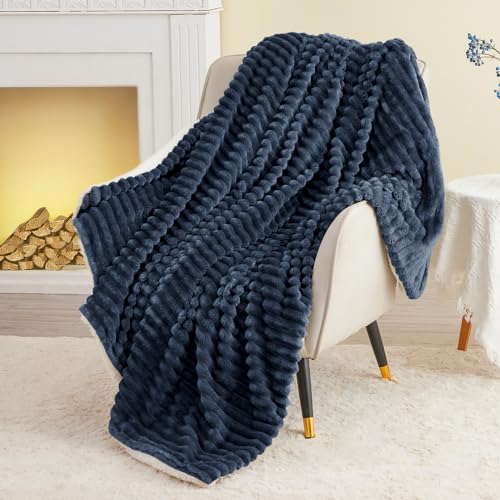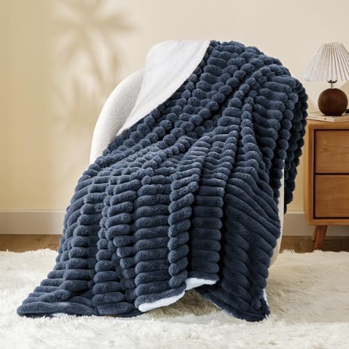 INFIIXSO Sherpa Throw Blanket for Couch – Super Soft & Warm Striped Fleece Blanket, Cozy Plush Fluffy Blanket All Season Use (Navy Blue, 50×60 Inches)