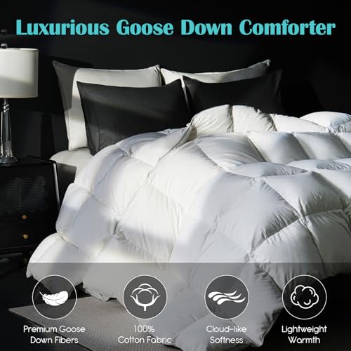 【Embrace Hotel-like Luxury】 Crafted with premium white goose down fibers and goose feathers, our down comforter queen size is highly fluffy and odorless, light as a cloud, yet cozy enough to wrap you in gentle warmth. Embrace the luxury of a good night’s sleep with our premium goose down comforter, where dreams are as light and airy as its superior filling.