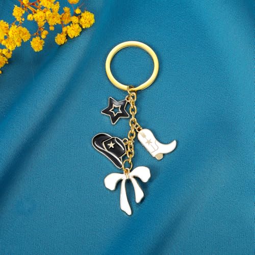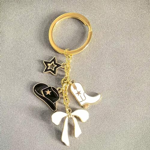 Generic Western Cowboy Hat and Boots Key Ring for Men Women – Bow Keychain Jewelry Lover Western Themed Party (LSP1), Large, Gold