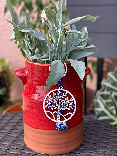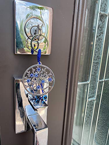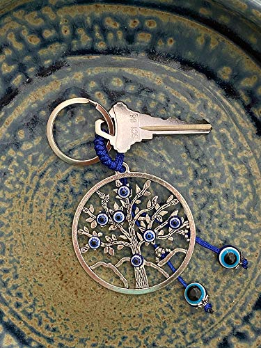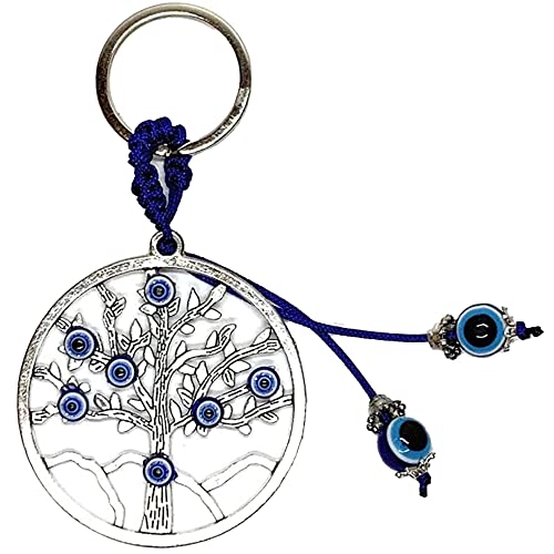 LUCKBOOSTIUM Silver Tree of Life & Evil Eye Good Luck Keychain – Protection Charm, Tree of Life Keychain, Evil Eye Hanging Accessory, Rear View Mirror Ornament, Gift for Men & Women, Good Luck Charm