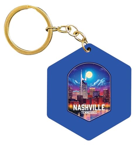 R and R Imports Nashville Tennessee Design D Parent row Souvenir 2” Wooden Hexagon Keychain