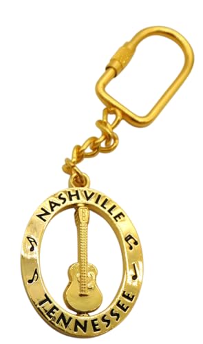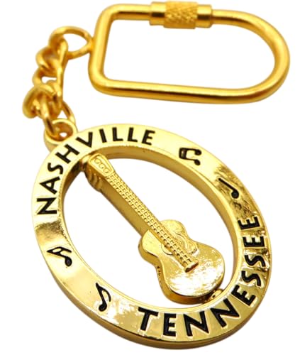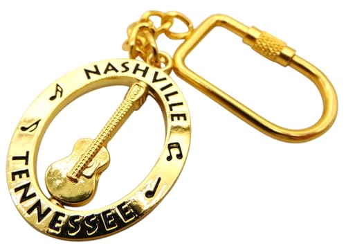 Westmon Works Nashville Keychain Souvenir of Music City Carabiner Durable Metal Clip Keyring with Engraved Guitar Design