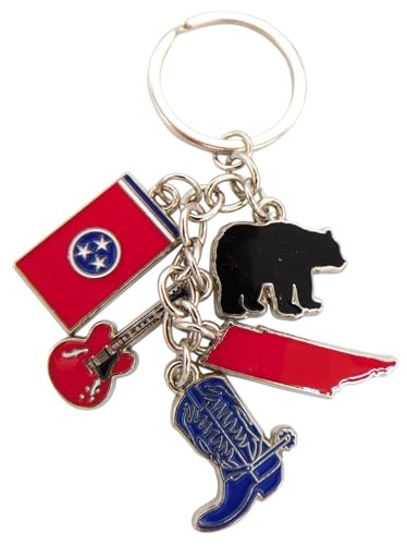 Celebrate the heart and soul of Tennessee with this exquisite charm keychain. Each piece on the key ring represents a slice of Tennessee’s culture, from the iconic tri-star flag to the soulful sounds of a guitar. Crafted with care from durable metal, this keychain is a portable homage to the Volunteer State, perfect for locals and visitors alike. Whether used for car or home keys, it’s a stylish reminder of the state’s rich heritage and makes for a wonderful keepsake or gift for anyone charmed by Tennessee’s enduring spirit.