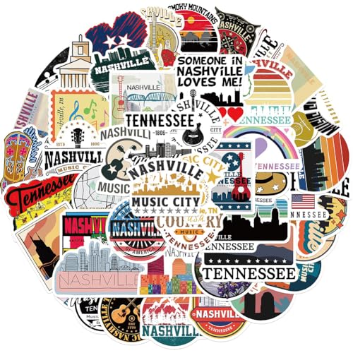 Nashville Music City Stickers |50 Pcs Tennessee Nashville Waterproof Vinyl Decals for Water Bottles Laptop Luggage Cup Computer Mobile Phone Skateboard Guitar Helmet Snowboard Décor