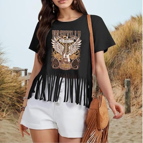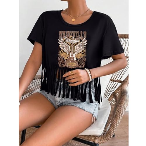 Nashville Music City T-Shirt Women Country Music Crop Tops Rock Band Tshirt Vintage Guitar Wings Graphic Tees