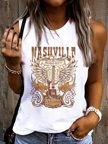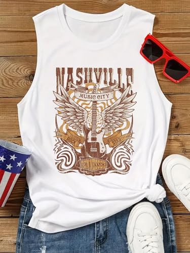 【Tee Tops Sleeve Style】Sleeveless Tank Tops For Women, Nashville Country Concert Tank Tops, Vintage Graphic Tees Vest, Summer Counrty Sleeveless Shirt For Women,Casual Country T-Shirts Tops.