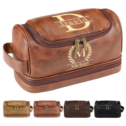 Personalized Toiletry Bag for Men,Gifts for Men,Christmas,Custom Leather Travel Bag Shave Kit,Engraved Pattern Text Dopp Kit,Ideas Gifts for him,Groomsmen,Anniversary,Dad,son,Husband,Father