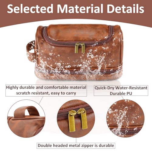 🌈【Waterproof & Stain-Resistant】Made of three layers of premium PU leather, this water-resistant toiletry bag repels spills and wipes clean easily. Metal zipper ensures smooth, rust-proof durability. Our waterproof liner creates an impenetrable shield that won’t seep even when placed on wet bathroom countertops.Make sure your toiletries stay dry in any usage scenario.