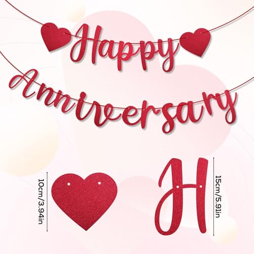 Happy Anniversary Banner, Red Heart Anniversary Decor, Pre-Strung Banners for Bedroom, Wedding Party
