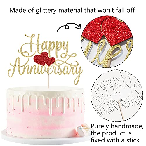 Kaoenla Happy Anniversary Cake Topper – Gold Glitter Happy Birthday Cake Topper, Company Anniversary Party Decoration, Wedding Wedding Anniversary Party Cake Decoration