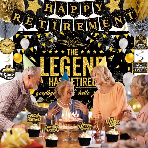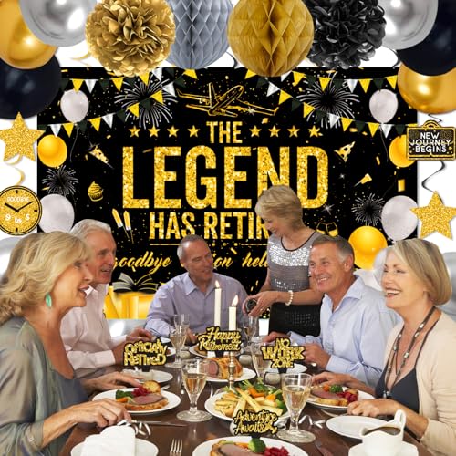 EASY TO ASSEMBLE: Just need 18 minutes, you’ll have a happy retirement party themed decoration in black gold and silver. The happy retirement banner, the legend has retired backdrop banner, hanging swirls and double-sided retirement cards have pre-cut holes, you can easily string them together and hang them for decorations, and they can be reused. Easy to assemble for both adults and kids, convenient for you to enjoy your retirement party with family, friends and colleagues