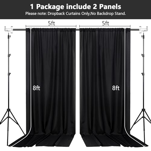 DIMENSIONS: Each order is for 2 (two) polyester curtains. Each curtain measures 5 feet wide x 8 feet high. Entire backdrop measures 10 feet wide x 8 feet high.Each curtain panel comes with 4 inch rod pocket on top, fit up to any standard rods. (Please note: Dropback Curtains Only,No Backdrop Stand.)
