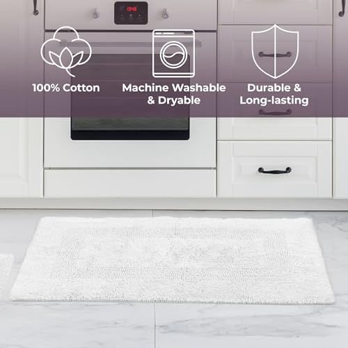 Bathroom Rugs – 2-Piece Cotton Bathroom Mat Set – Machine Washable Bath Mats for Restroom, Kitchen, or Laundry Room by Lavish Home (White)
