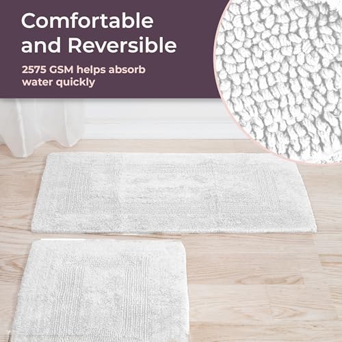 COMFORTABLE AND REVERSIBLE – These bath mats gives you a dry and cozy place to stand while you get ready to start your day. Each bath rug is fully reversible with a soft cotton material on both sides offering plush comfort for your feet.