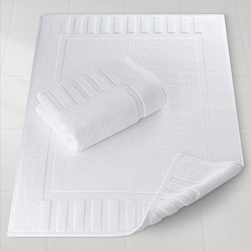![White Classic Luxury Bath Mat Floor Towel Set - Absorbent Cotton Hotel Spa Shower/Bathtub Mats [Not a Bathroom Rug] 22"x34" | 2 Pack | White - Image 6](https://m.media-amazon.com/images/I/41ZaNNVnokL.jpg)