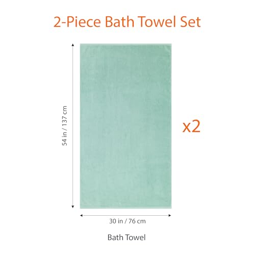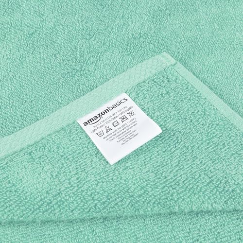 Amazon Basics 100% Cotton Quick-Dry Lightweight Moisture Absorbing Bath Towel, 2-Pack, Seafoam Green, 54″ x 30″