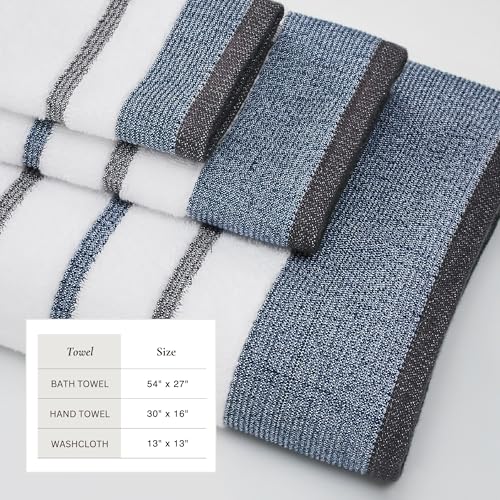 Great Bay Home Decorative Bath Towel Set – Luxury Cotton 6 Piece Towel Set – 2 Bath Towels, 2 Hand Towels, 2 Washcloths – Luxurious, Ultra-Soft, Durable Towels for Bathroom Decor (Blue/December Sky)