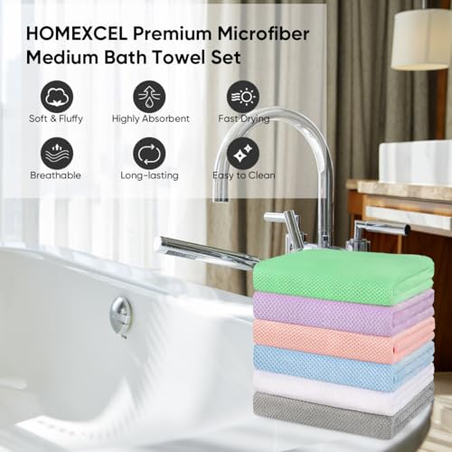 HOMEXCEL 6 Pack Bath Towel Set, (24 x 48 Inches) Microfiber Ultra Soft Highly Absorbent Bath Towels, Lightweight and Quick Drying Towels for Hotel, Bathroom, Spa and Beauty Parlor, Multicolor