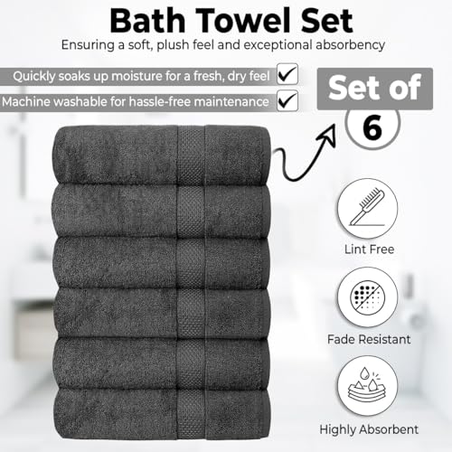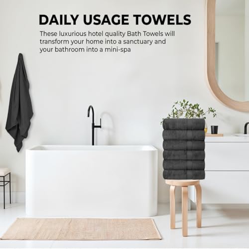 Hotel & Spa 100% Cotton Bath Towels Pack of 6, Ultra Soft, Quick Dry, Lightweight, Highly Absorbent, Perfect for Face, Hands, Spa, Gym, Hotel, Resort & Daily Use – Grey (24″ x 48″)