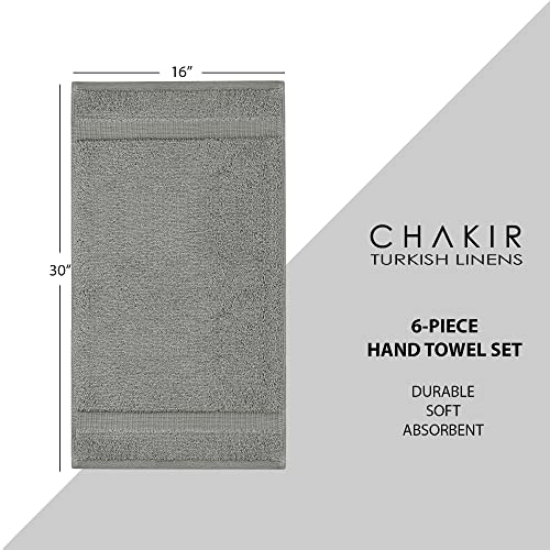 Chakir Turkish Linens | Hotel & Spa Quality 100% Cotton Premium Turkish Towels | Soft & Absorbent (6-Piece Hand Towels, Gray)