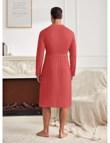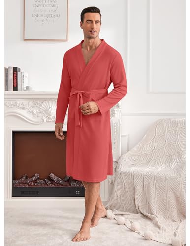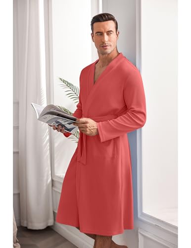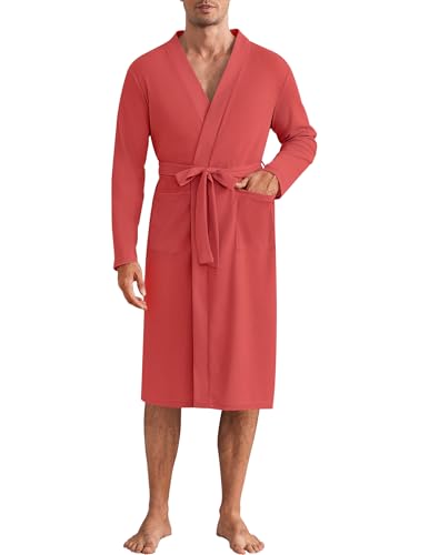 Ekouaer Mens Robes Lightweight Waffle Knit Kimono Bathrobe Long Sleeve Sleepwear Soft Knee Length Robe with Pockets S-3XL